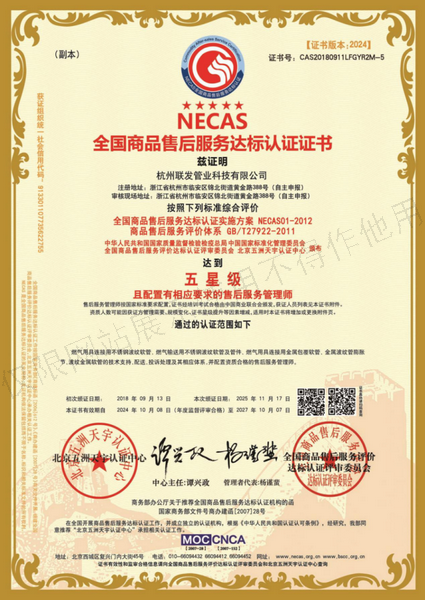 全国商品售后服务达标认证证书